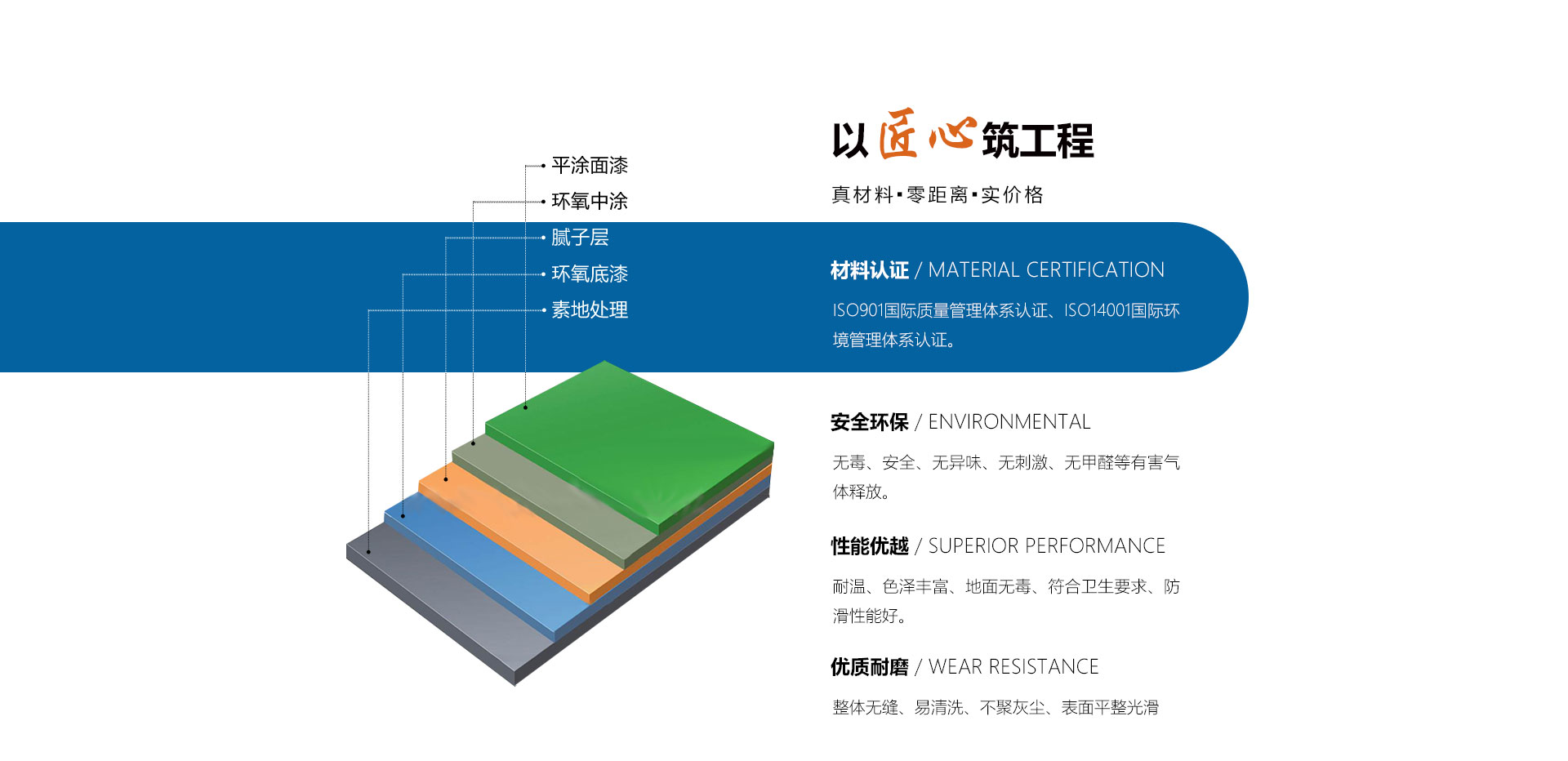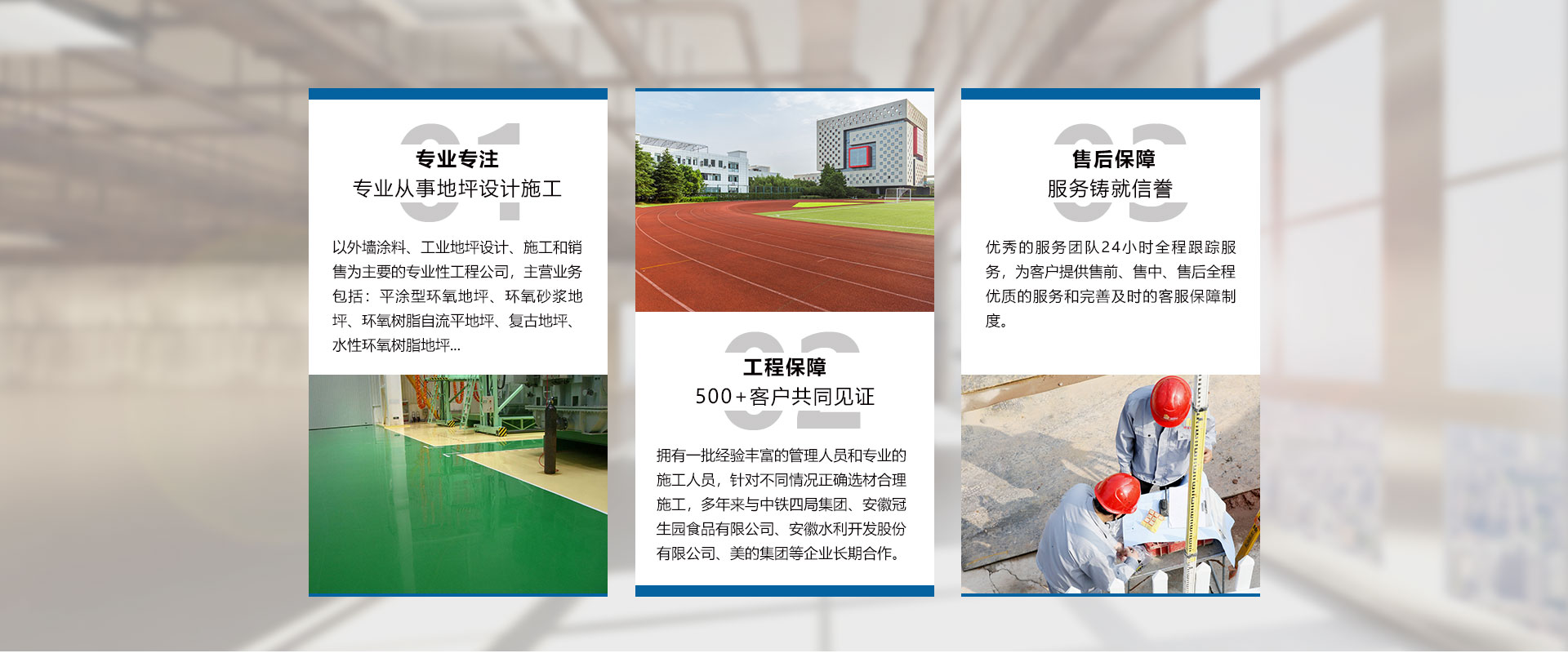 安徽世博裝飾工程有限公司成立于2009年,是一家以外墻涂料、工業(yè)地坪設(shè)計(jì)、施工和銷售為主要的專業(yè)性工程公司、是工業(yè)地坪施工的專業(yè)企業(yè)。公司設(shè)立了售后服務(wù)中心,用戶遍布全國大中小城市,一大批具有標(biāo)志性的長期合作伙伴。“世博公司”環(huán)氧地坪工程,受到了越來越多的不同行業(yè)用戶的好評及青睞。公司擁有一批經(jīng)驗(yàn)豐富的管理人員和專業(yè)的施工人員,以保障產(chǎn)品的成功應(yīng)用,用較小的代價獲得理想的效果,尤其在地坪涂裝方面優(yōu)勢突出。而且以好的品質(zhì)管理模式,向客戶提供“獨(dú)具魅力”、“性能優(yōu)異”、“質(zhì)量穩(wěn)定”的產(chǎn)品。公司主要產(chǎn)品包括:平涂型環(huán)氧地坪、環(huán)氧砂漿地坪、環(huán)氧樹脂自流平地坪、滾涂型防靜電地坪、自流平防靜電地坪、復(fù)古地坪、水性環(huán)氧樹脂地坪、彩色透水混凝土地坪、壓花壓模藝術(shù)地坪、金剛砂耐磨硬化地坪、混凝土密封固化劑地坪、乙烯基酯重防腐地坪、GEP 標(biāo)準(zhǔn)型地坪、彈性PU運(yùn)動場地坪、塑膠跑道地坪,PVC橡膠地板、停車場地坪、無震...